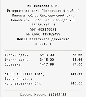 При оплате вместе с товаром Вы получаете электронный чек, подтверждающий факт приобретения товара.